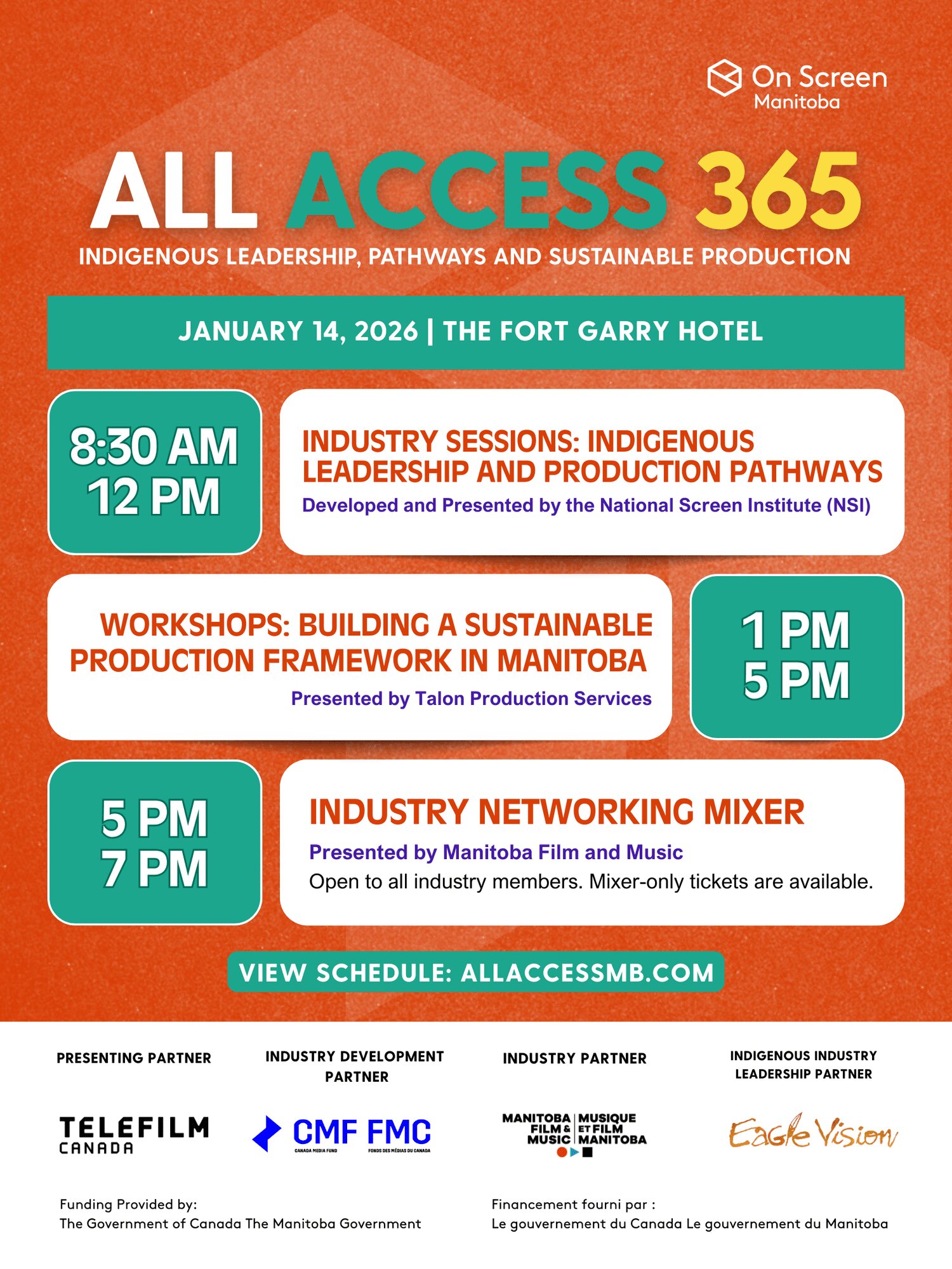 All Access 365 brings together national partners and Manitoba media production professionals for focused conversations on Indigenous leadership, production pathways, and sustainable production.